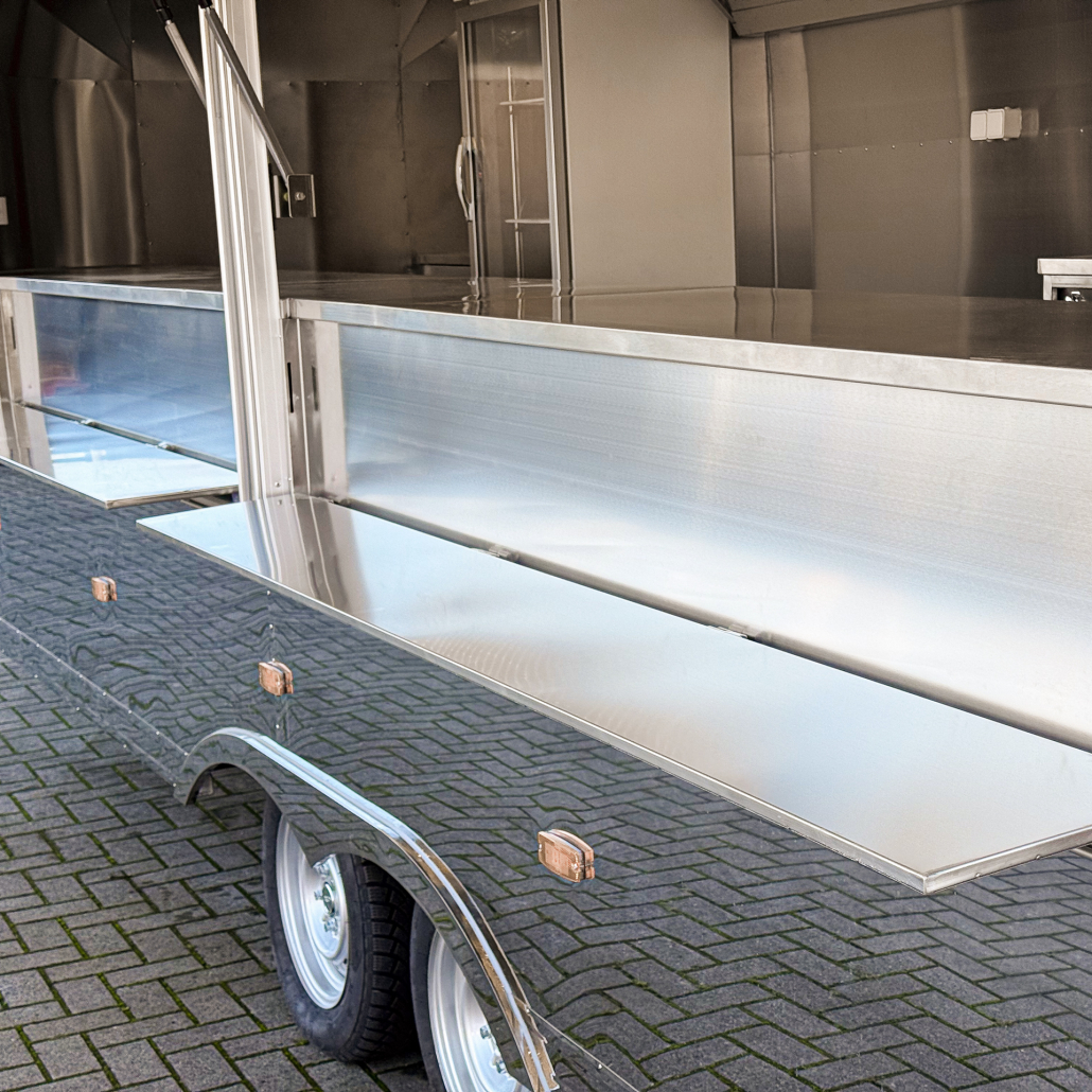 Der Deli Star American steht für maximale Individualität im mobilen Verkauf. Mit Innenlängen von 3 bis 6 m lässt er sich exakt auf die eigenen Anforderungen zuschneiden, ob als kompakter Einzelstand oder großzügiger Verkaufsanhänger mit zwei Bedienpersonen. Der serienmäßige Edelstahl-Innenausbau, das Gas- oder Generatorgehäuse auf der Deichsel und die LED-beleuchtete Dachwerbetafel machen den American von Beginn an einsatzbereit. Besonders geeignet für Streetfood-Konzepte, Eventgastronomie und alle, die mit ihrem Fahrzeug einen bleibenden Eindruck hinterlassen wollen.