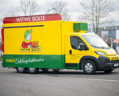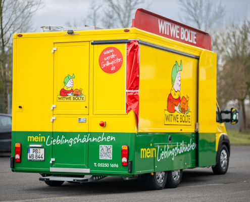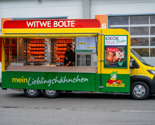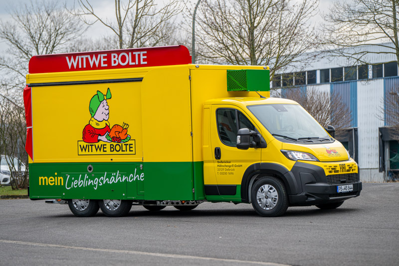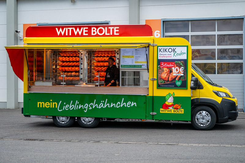 Unsere HG-Serie (HG35, HG45, HG55) ist die erste Wahl für Unternehmen, die sich auf Grillhähnchen spezialisiert haben. Mit leistungsstarken Profi-Grillgeräten, großzügigen Kühlräumen und einer ergonomischen Arbeitsumgebung sichern Sie sich höchste Produktionssicherheit. Betriebe wie Turländer und Witwe Bolte vertrauen seit Jahren auf Esselmann, wenn es um zuverlässige Hähnchengrillfahrzeuge geht.