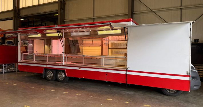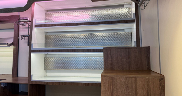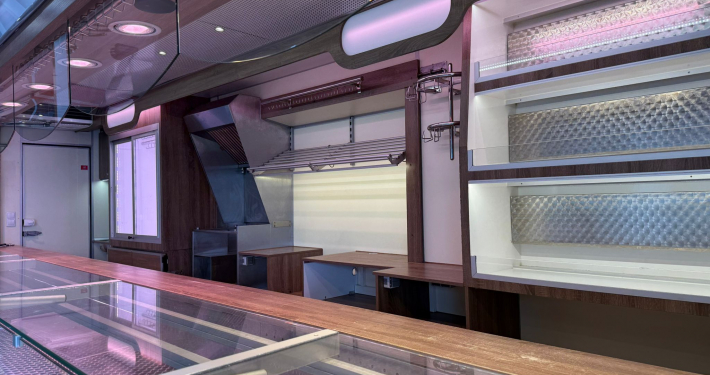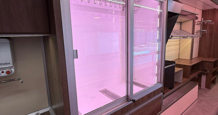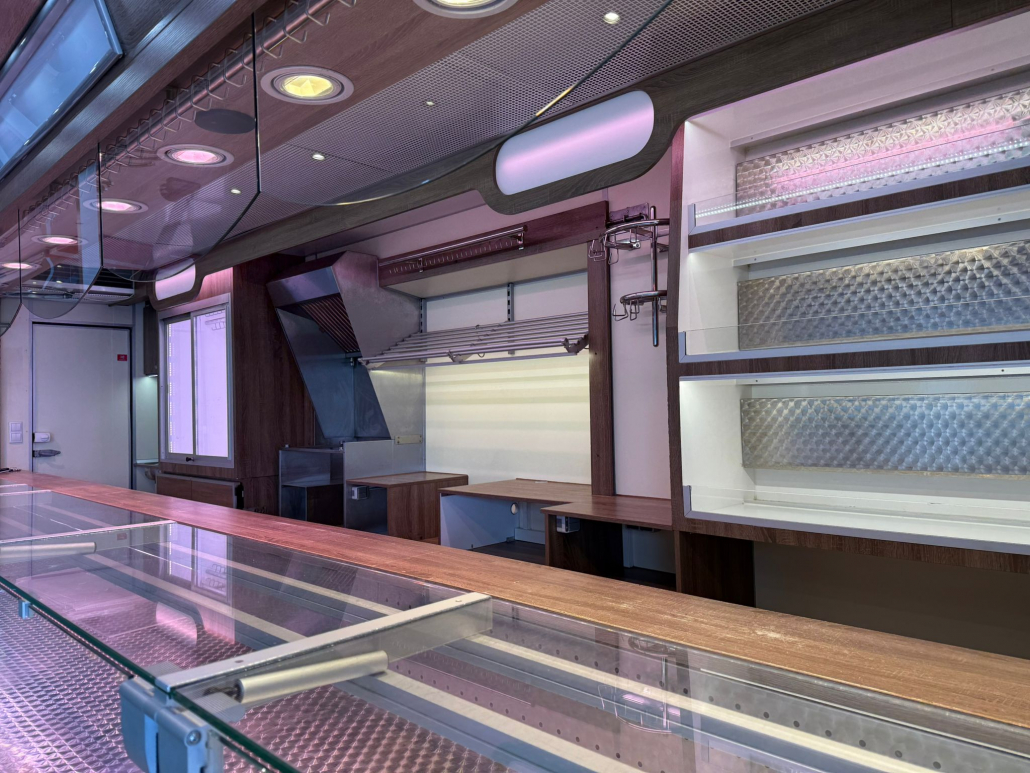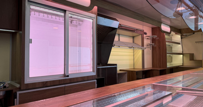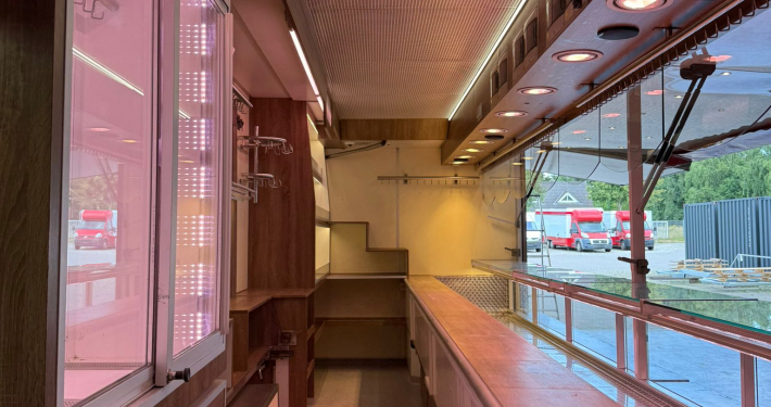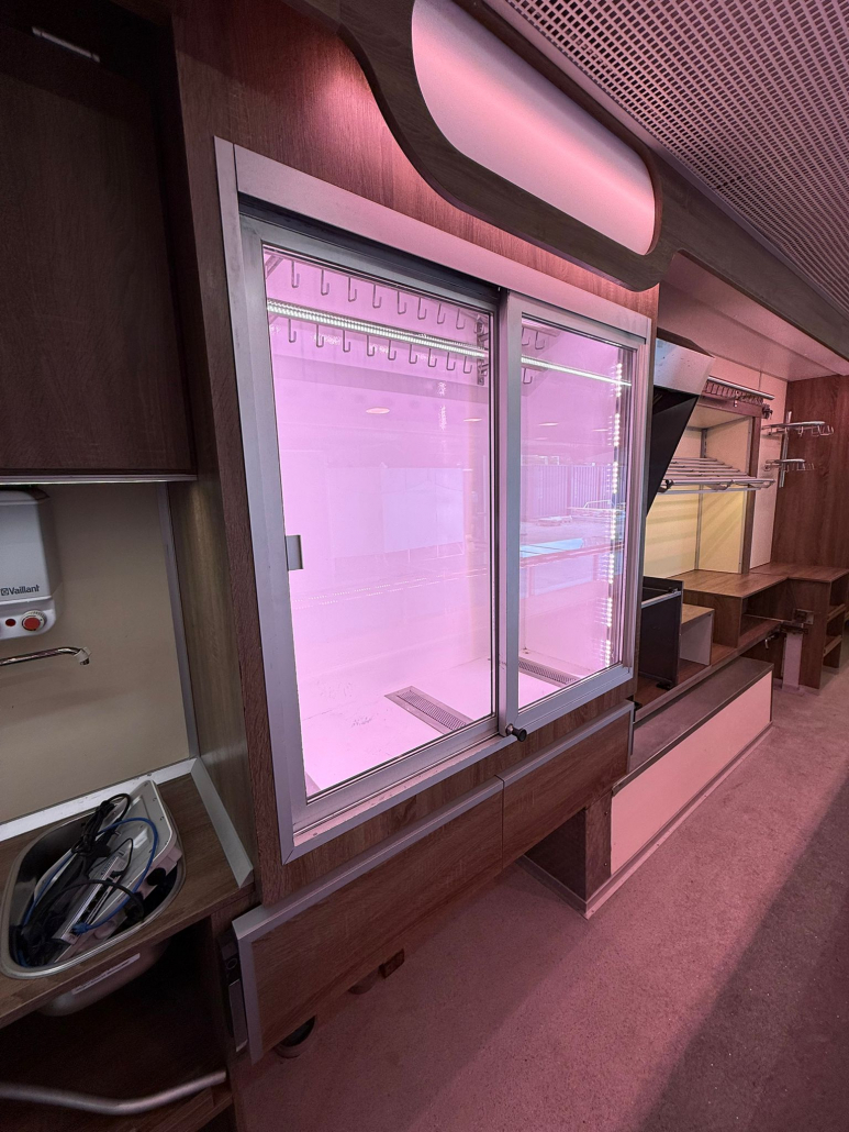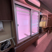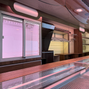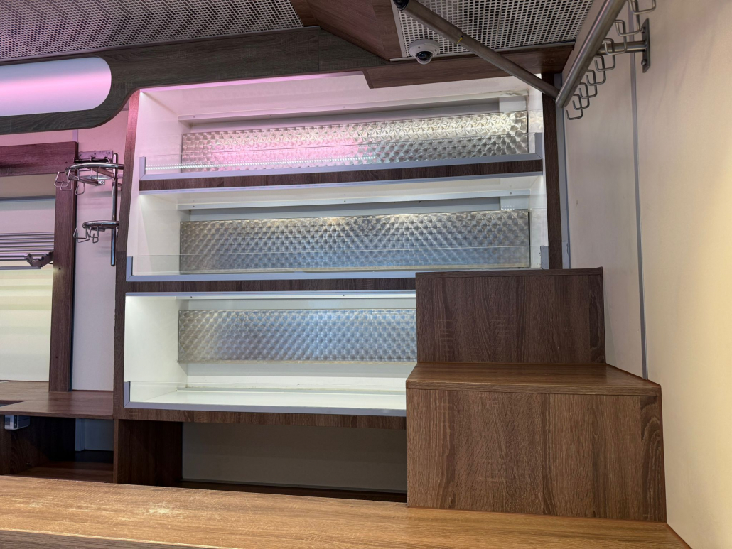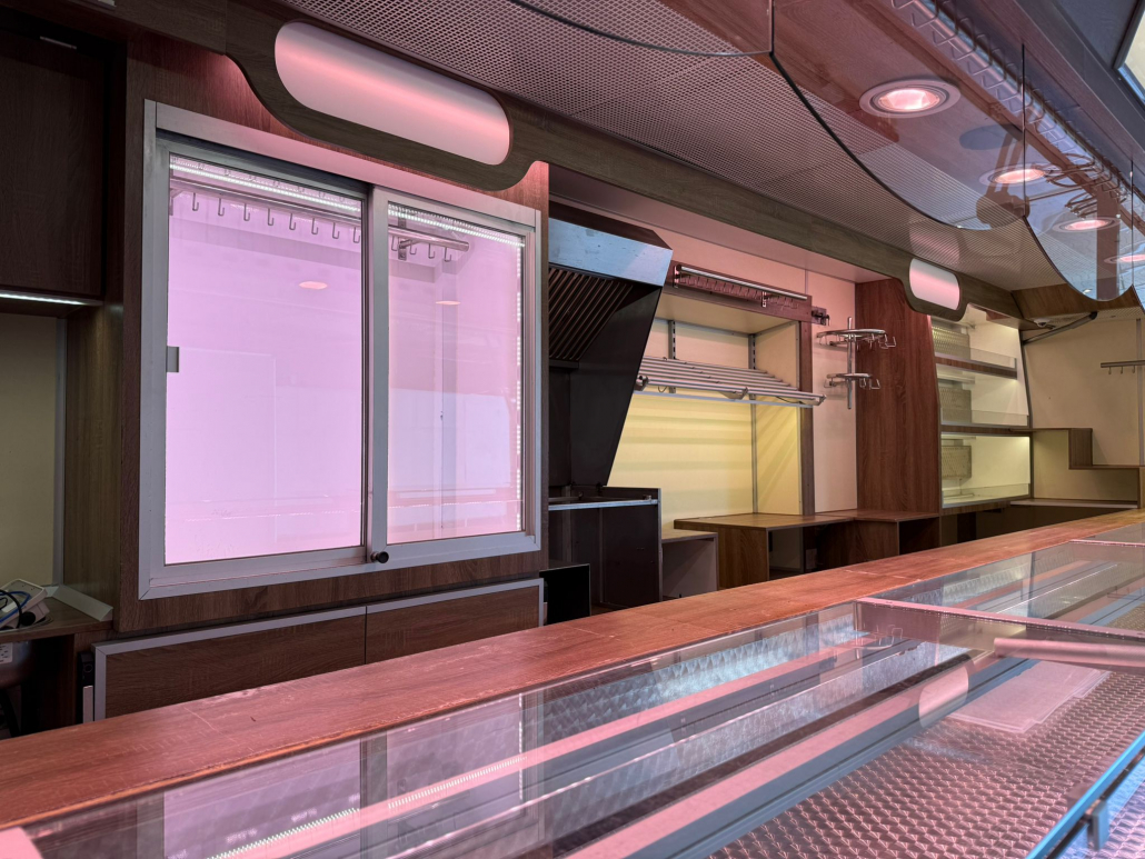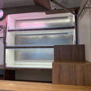 - 6,8 m Verkaufskühltheke, 740 mm Auslage (senkrechter Glasbeschlag)