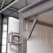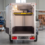 geschweißter, feuerverzinkter Tieflader-Fahrgestellrahmen, FePur© Kofferaufbau mit 60mm Isolierung, bündiges Edelstahlheckportal in verstärkter Ausführung, verstärkte Ladekante aus 2mm Edelstahl, eine Tür über die volle Ladebreite mit Drehstangenverschluss, Stellplatz für 1 Euro-Paletten, Innenraumbeleuchtung, Anschluss mittels CEE Wandstecker 3x16A, Zuleitungskabel mit CEE-Kupplung 3x16A / Stecker, Länge: 2m, COC-Papier für die Fahrzeug-Zulassung