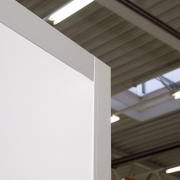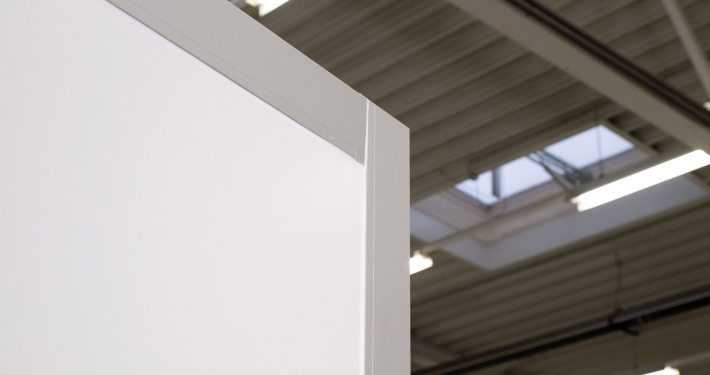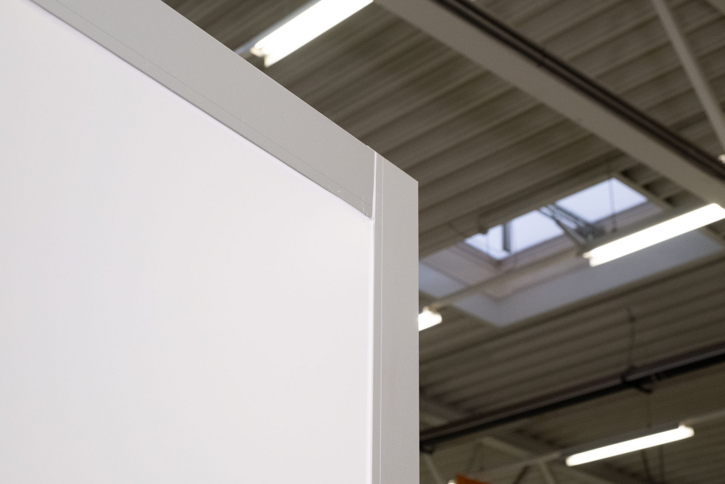Außenfarbe ähnlich RAL 9010, Eckprofile silber-eloxiert E6 EV1, ohne Beschriftung