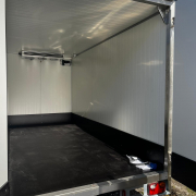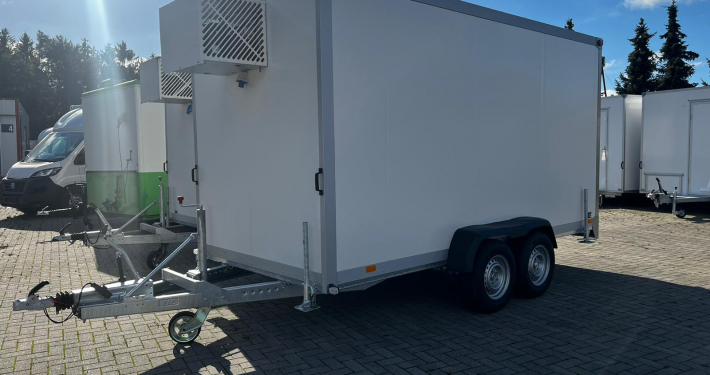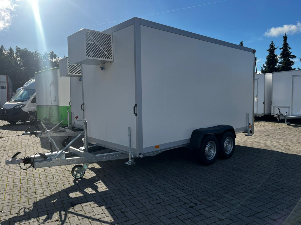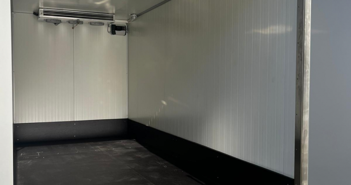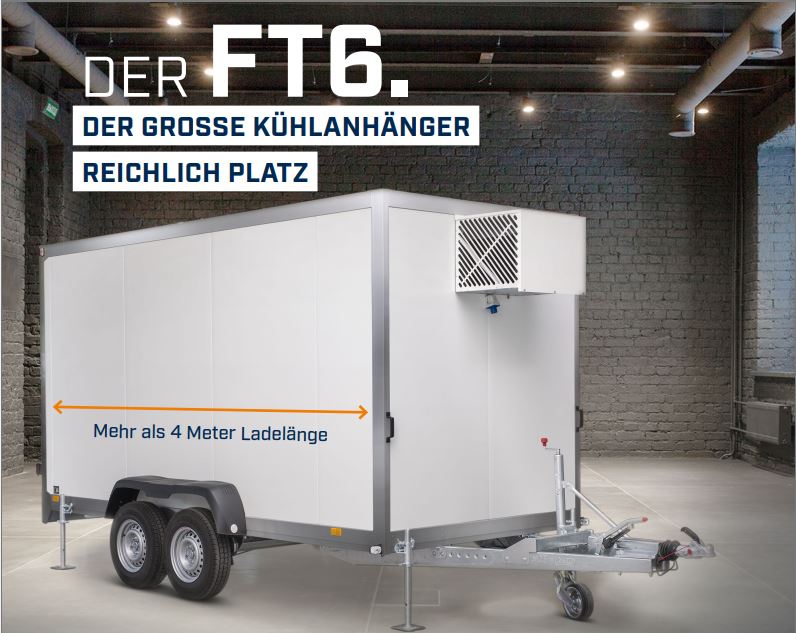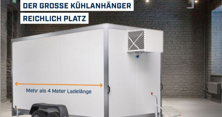 geschweißter, feuerverzinkter Tieflader-Fahrgestellrahmen, FePur© Kofferaufbau mit 60mm Isolierung, bündiges Edelstahlheckportal in verstärkter Ausführung, verstärkte Ladekante aus 2mm Edelstahl, Doppelflügeltür über die volle Ladebreite mit Presshebelverschluss und Notentriegelung, Türfeststeller, Profilzylinderschloß mit Standardschließung, Standflügel mit Treibriegelverschluß, Stellplatz für 6 Euro-Paletten, Innenraumbeleuchtung, Anschluss mittels CEE Wandstecker 3x16A, Zuleitungskabel mit CEE-Kupplung 3x16A / Stecker, Länge: 2m, COC-Papier für die Fahrzeug-Zulassung