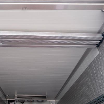 mit beidseitig 2 Reihen Lochschienen, Transporthalterung für Sperrstangen unter der Innendecke
