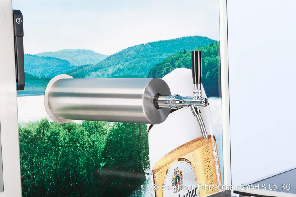 Trotz seiner geringen Größe verfügt der PM15 über einen üppigen Kühlraum, in dem bis zu 6 Fässer und 10 Getränkekisten Platz finden. So können Getränke direkt schankfertig transportiert und auf Veranstaltungen bereitgestellt werden.