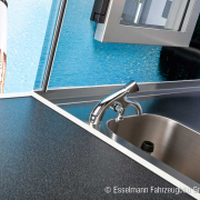 Die Heckklappe wird im ausgefahrenen Zustand zum Multifunktionsdach. Dadurch entsteht nicht nur ein praktischer Wetterschutz, sondern auch Platz für eine integrierte Hi-Fi-Anlage. So sorgt der PM15 auf Wunsch für Eventatmosphäre direkt am Ausschank.