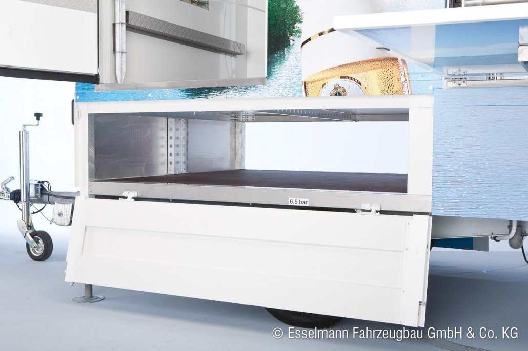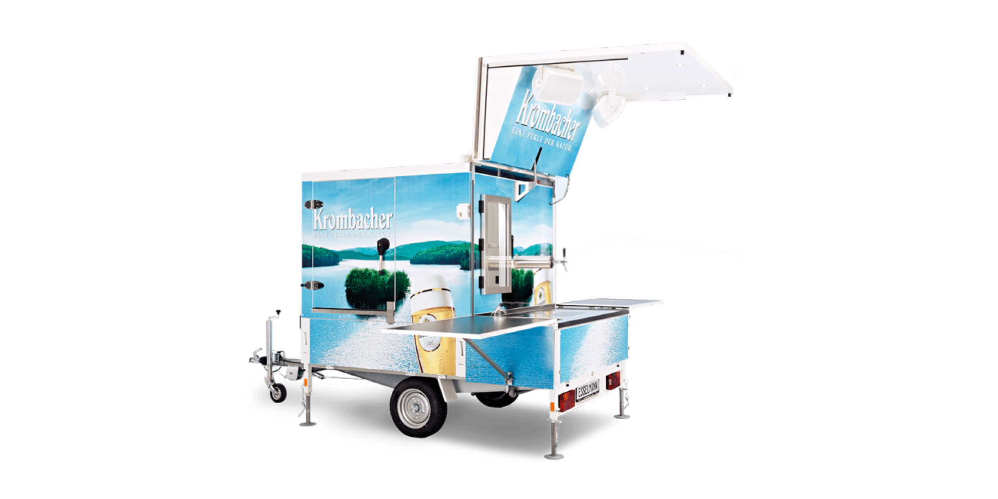 Neben dem Kühlraum bietet der PM15 integrierte Staumöglichkeiten für Stehtische und Klapptheken. Damit haben Betreiber alles an Bord, was für den Betrieb vor Ort benötigt wird – schnell und unkompliziert.