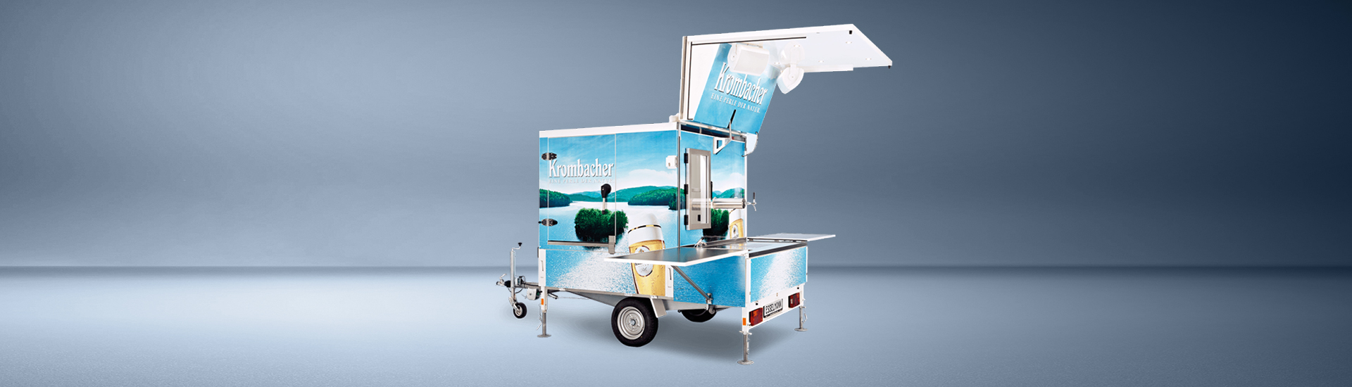 Mit Transportmaßen von 2.700 × 1.700 × 2.600 mm und einem zulässigen Gesamtgewicht von 1.500 kg ist der PM15 handlich, leicht rangierbar und passt in nahezu jede Einfahrt. Damit ist er besonders ideal für Selbstabholer, die Getränke und Equipment direkt im Wagen transportieren möchten.