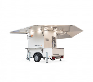 Mit Transportmaßen von 2.700 × 1.700 × 2.600 mm und einem Leergewicht von nur 1.000 kg ist der RJ5 kompakt und leicht zu bewegen. Gleichzeitig bietet er eine Zuladung von bis zu 500 kg, sodass Getränke, Zubehör und weiteres Equipment problemlos transportiert werden können. Damit vereint der Wagen Mobilität und Kapazität auf ideale Weise.