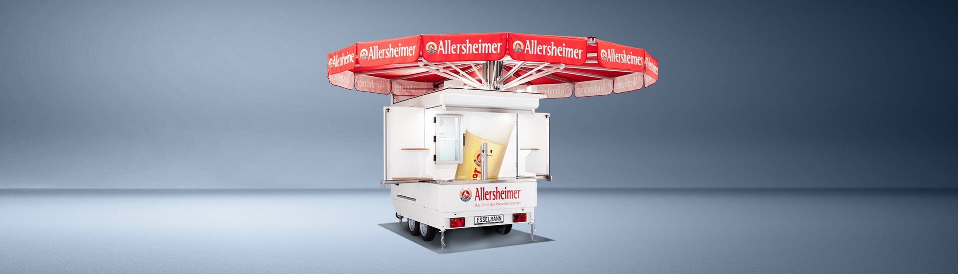 Der RJ5 gehört zur Esselmann-Produktgruppe der Partymobile, die für kleine und mittlere Veranstaltungen optimiert sind. Charakteristisch ist das faltbare Schirmdach, das nicht nur für Wetterschutz sorgt, sondern auch großzügige Flächen für Branding und Werbung bietet. Damit wird der RJ5 zum auffälligen Hingucker auf jeder Feier, jedem Straßenfest oder bei Promotionaktionen.
