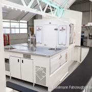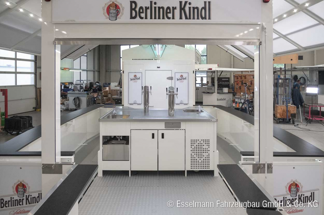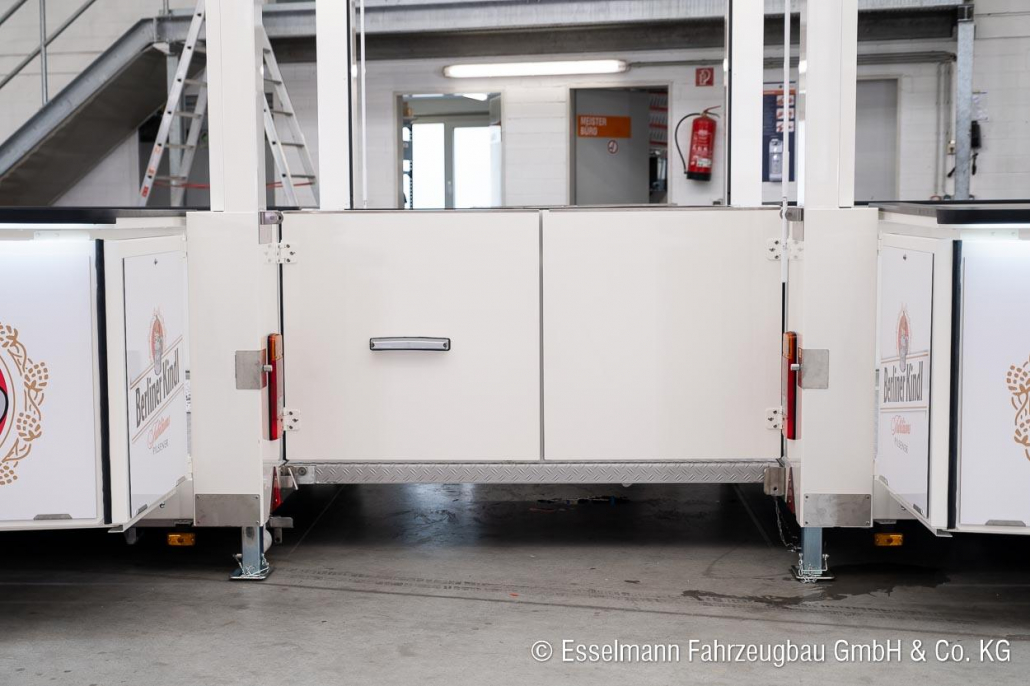 Die Trifore 50 KR Doppel8 ist die Antwort auf Veranstaltungen, bei denen maximale Ausschankkapazität und eindrucksvolle Optik gefordert sind. Zwei Trifore 50 KR Fahrzeuge werden dabei mit dem Heck zueinander aufgestellt und durch eine Verbindungsbrücke mit integrierter Tür verbunden. So entsteht ein imposanter Verkaufsbereich, der nicht nur funktional überzeugt, sondern auch optisch ein absolutes Highlight darstellt.