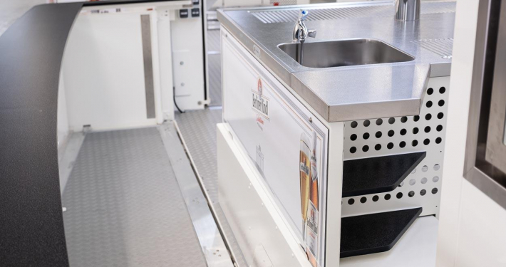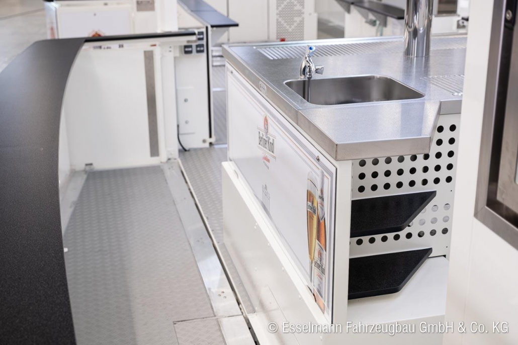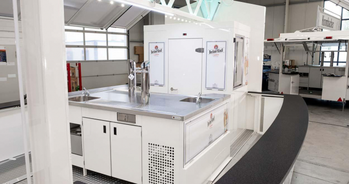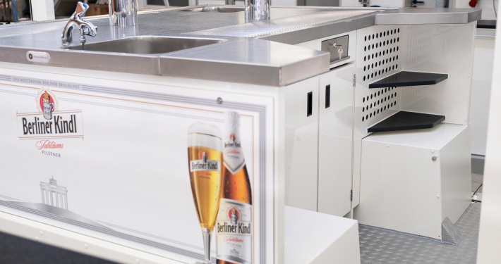 Durch die Kombination von zwei Wagen verdoppelt sich die ohnehin großzügige Thekenlänge der Trifore 50 KR. So entsteht ein XXL-Ausschankbereich, der auch bei sehr hoher Besucherfrequenz einen reibungslosen Betrieb sicherstellt. Mit mehreren Zapfstationen an beiden Fahrzeugen lassen sich Ausschlagzahlen erreichen, die für Großveranstaltungen unerlässlich sind.