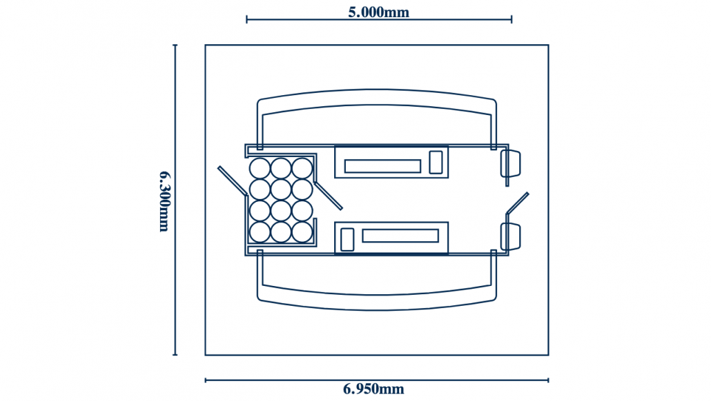 Trotz des beeindruckenden Aufbaus bleibt der Platzbedarf vergleichbar mit dem eines konventionellen Ausschankwagens. Mit einem zulässigen Gesamtgewicht von 3.500 kg und der serienmäßigen Kurbelhöhenverstellung ist die Doppel8 ebenso flexibel im Handling wie die Einzelmodelle.