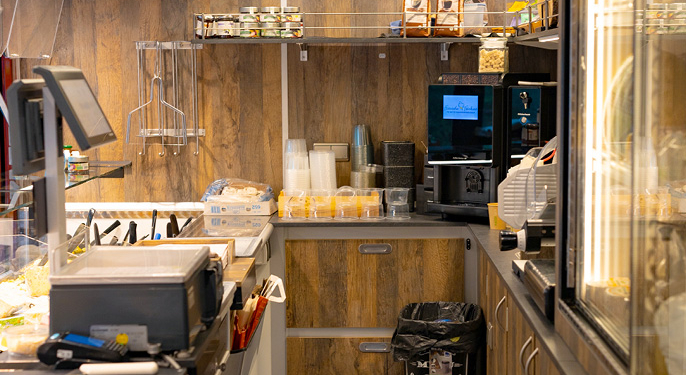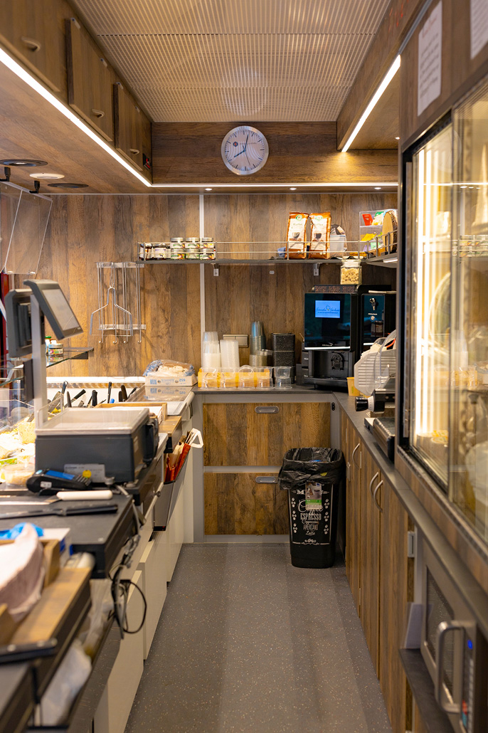 Unsere Fahrzeuge bieten großzügige Kühltheken mit klarer Sicht auf Ihr Sortiment, hygienische Arbeitsflächen und außerdem durchdachte Stauraumlösungen für Zubehör und Verpackung. Darüber hinaus sorgt die stilvolle Darstellung von Hartkäse, Antipasti und Spezialitäten für Vertrauen und Kaufimpulse. Esselmann steht für langlebige Verarbeitung, hohe Funktionalität und individuelle Ausstattung nach Wunsch.